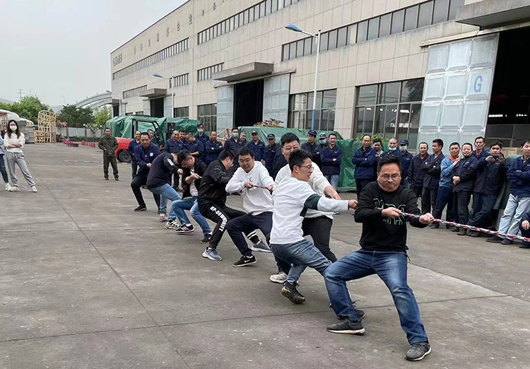 比賽以各部門為單位,每兩個小組之間進行淘汰賽。當比賽開始的哨聲響起,大家全都緊握繩子,憋足了勁把繩子往后拉。比賽過程中,各部門參賽隊員努力拼搏,無論是場上還是場下,氣氛都異常緊張,富有節奏感的“一二拉,一二拉”,還有加油聲,充斥在操場上空。尤其是在勝負難分的時刻,大家毫不退卻,咬緊牙關,堅持到底。