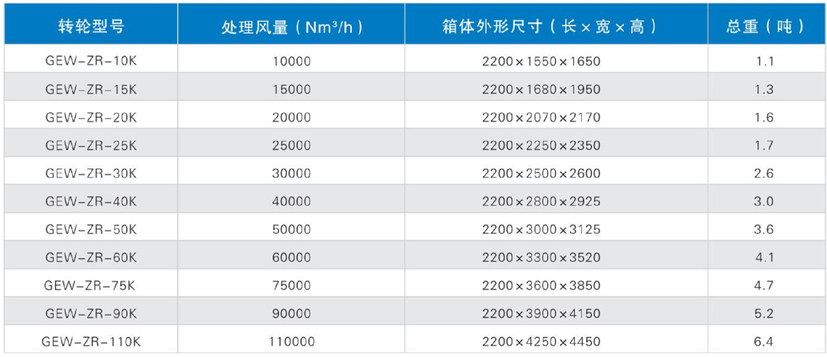 備注:在分子篩轉輪上易發生聚合反應的烯烴類物質、有機硅氧烷、沸點超高260℃以上的大分子物質等,可能會對轉輪造成永久性損壞。